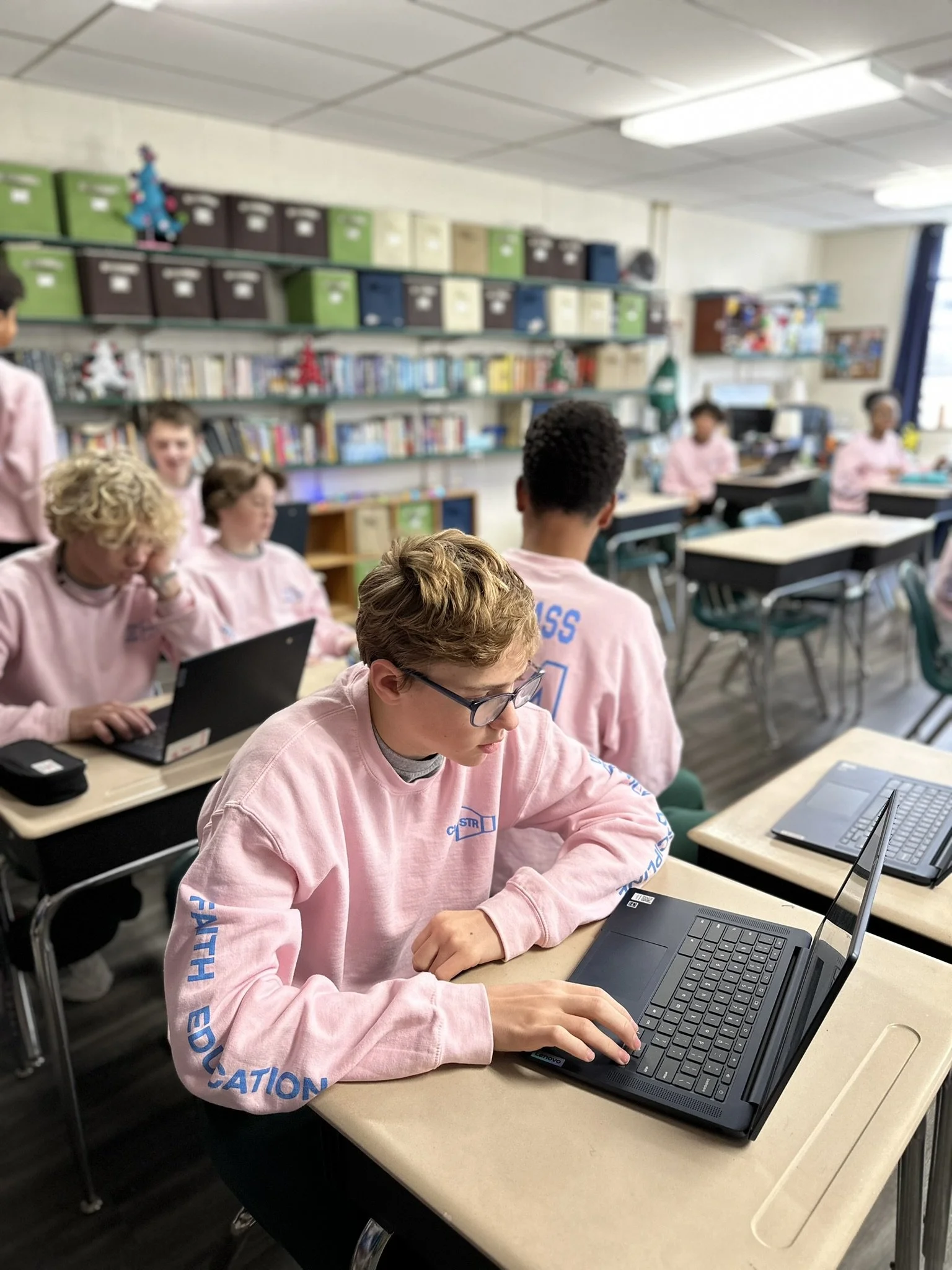 Students in all grade levels attend Physical Education class twice weekly. Besides P.E., students in Kindergarten through eighth grades also attend Art, Music, and Technology classes twice a week. Students in our elementary school visit our school library for story time and book check-out weekly.